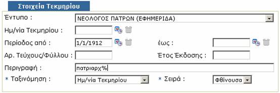 αναζήτηση “πατριαρχης | ιωακειμ” θα φέρει όλες τις περιγραφές που περιλαμβάνουν