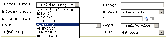Εντύπου : Πατήστε στο εικονίδιο με το βελάκι (για να εμφανιστεί ο κατάλογος με